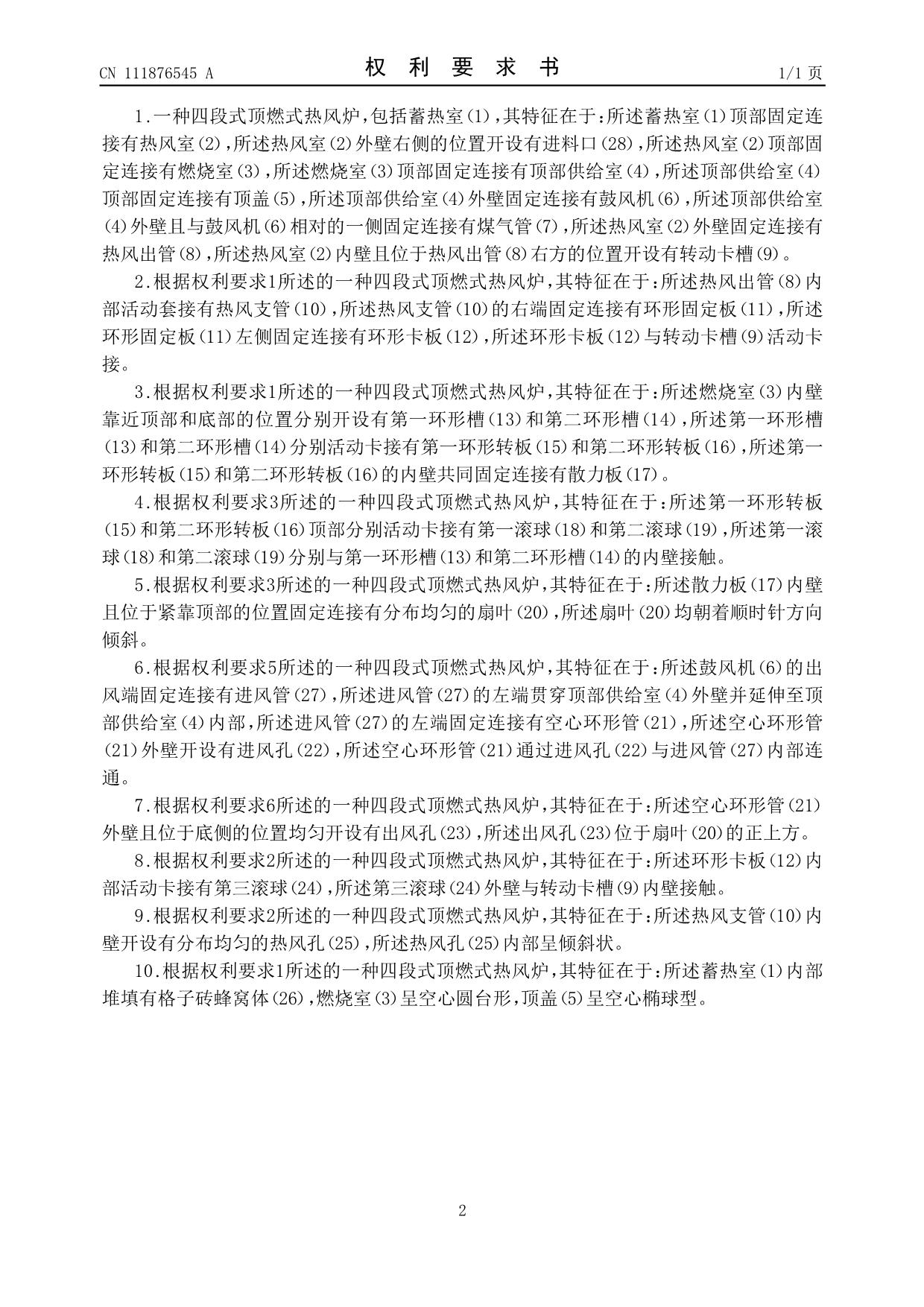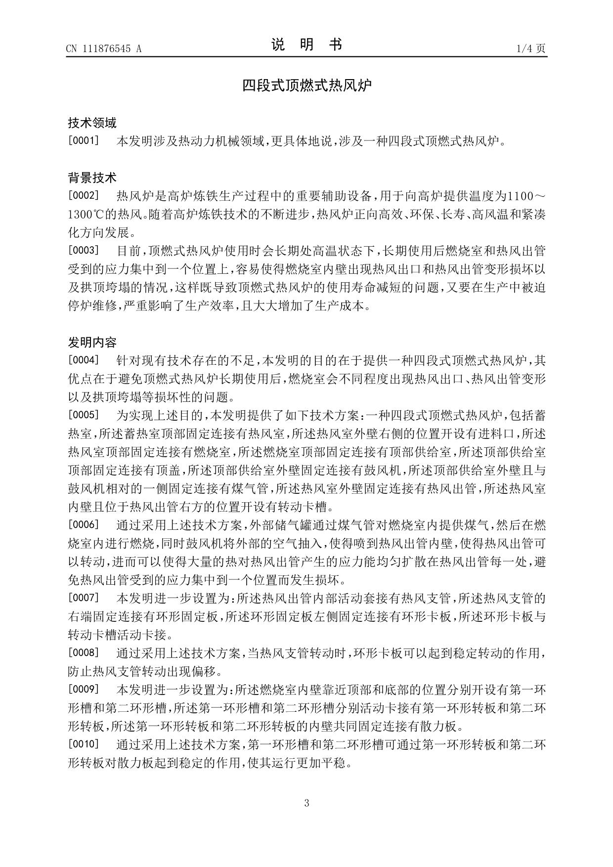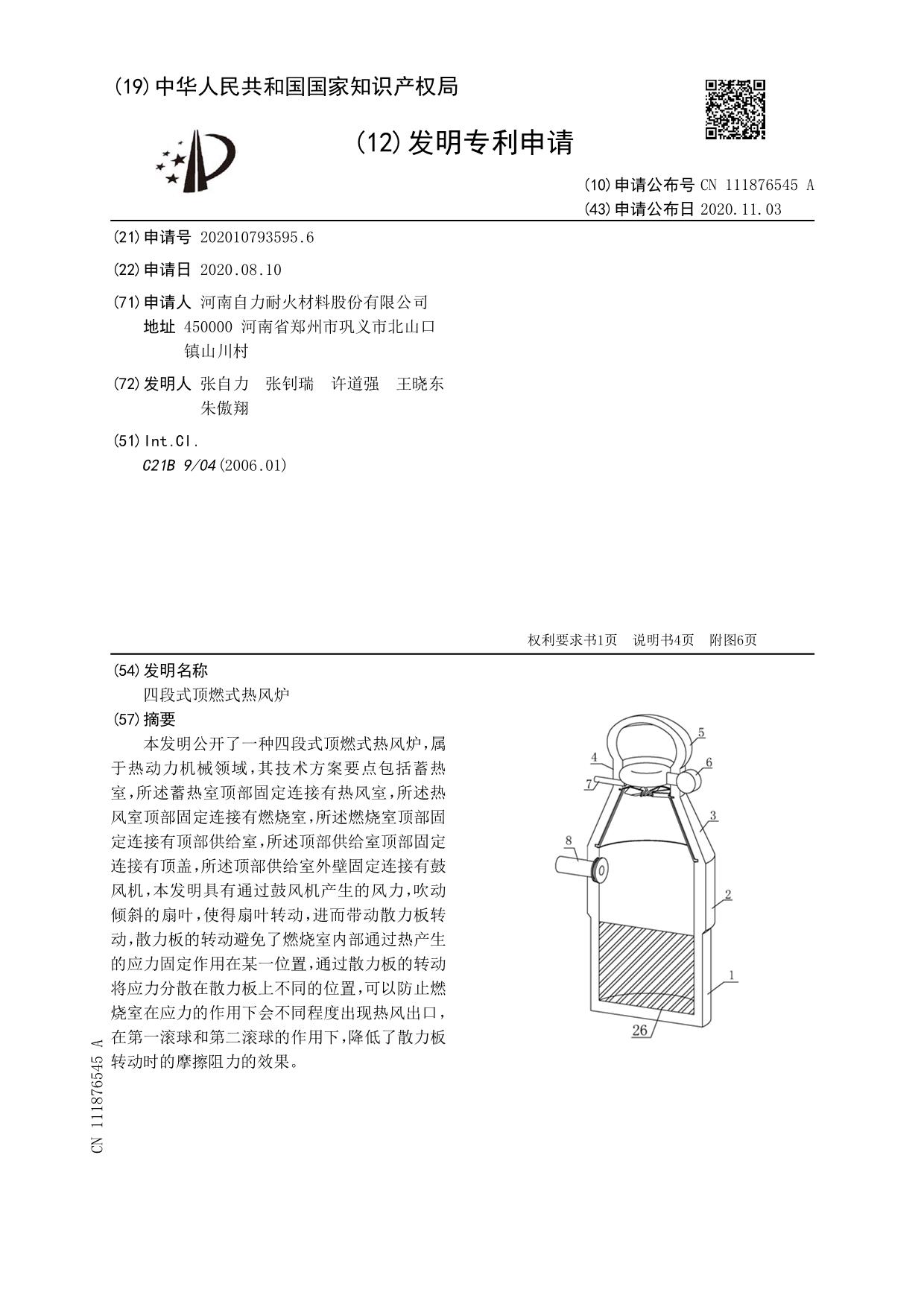 發(fā)明專(zhuān)利——四段式頂燃式熱風(fēng)爐