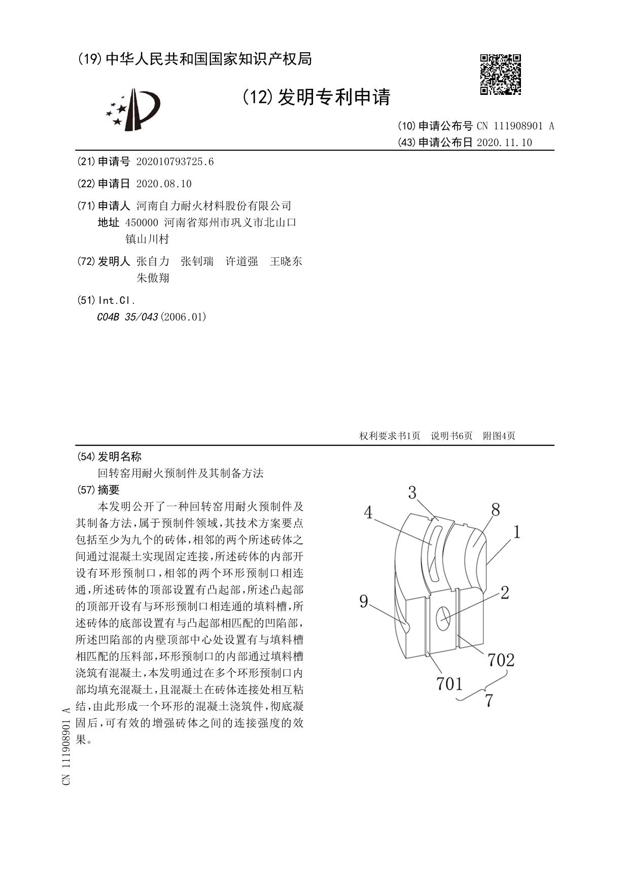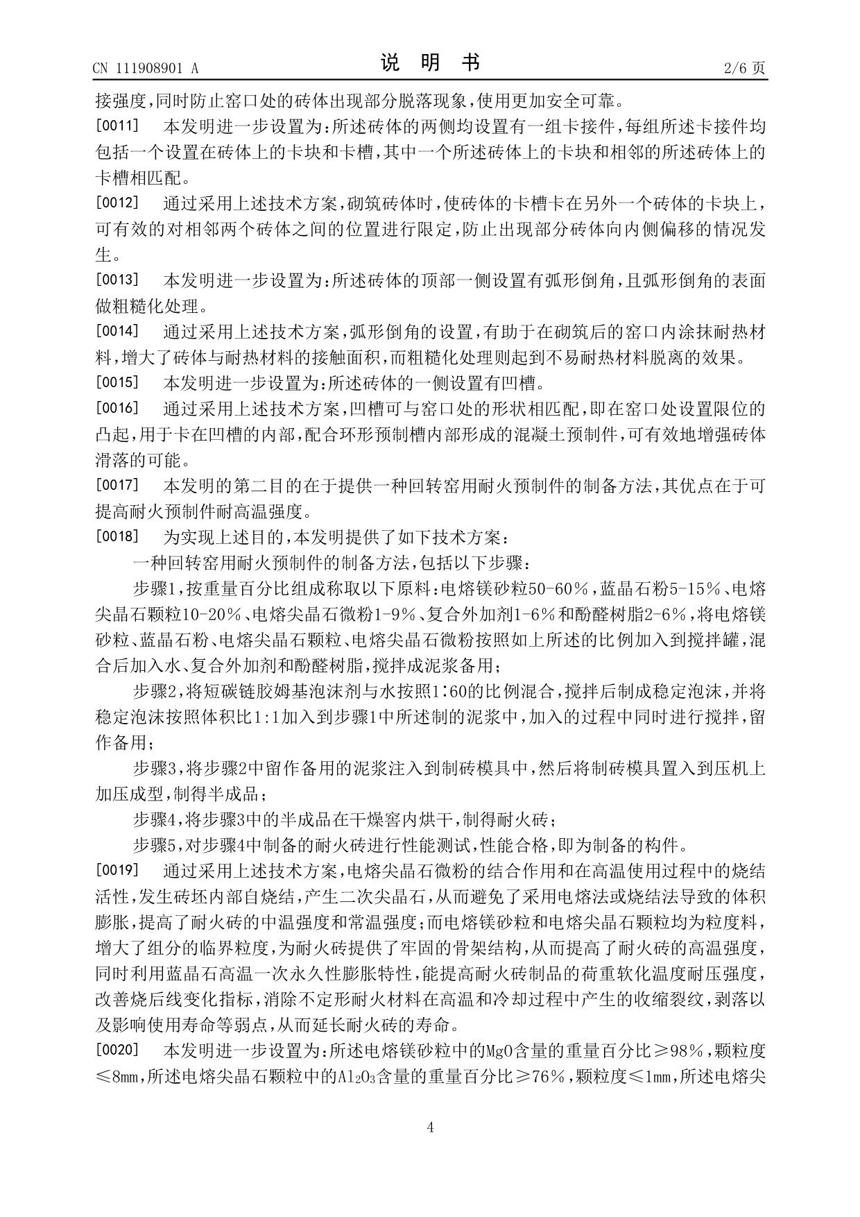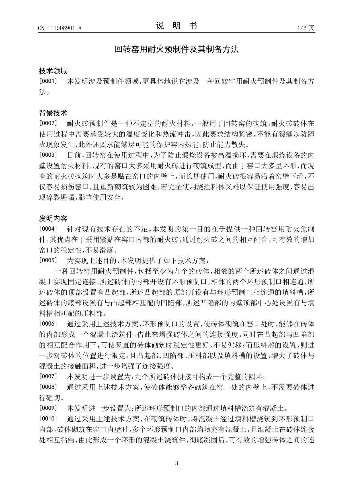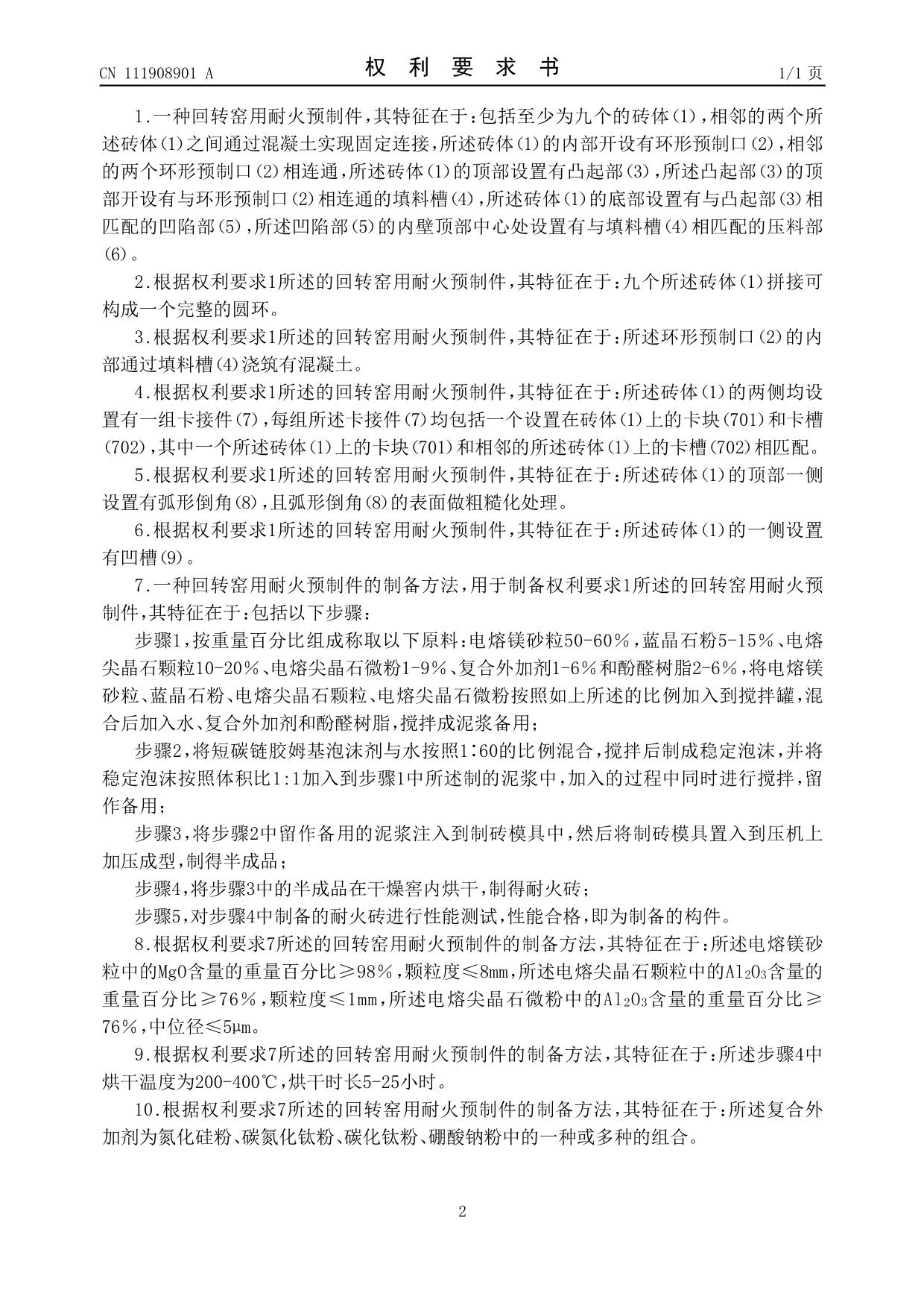 發(fā)明專利——回轉(zhuǎn)窯用耐火預(yù)制件及其制備方法